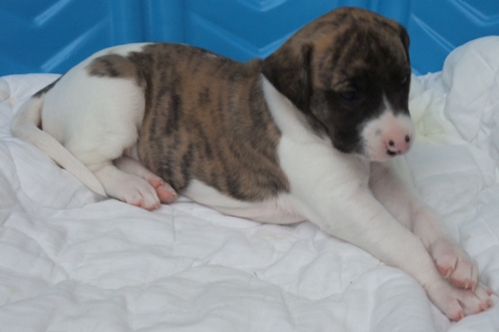 Back at the end of January, my mother’s whippet, Jessie, had her litter of puppies. Mom made the fatal error of letting me name the puppies, resulting in a litter named after some of my favorite living sci-fi authors. Since whippets usually have large litters, and Jessie’s first litter consisted of eight puppies, I had originally expected to honor (if you call having a puppy named after you an honor – which, really, shouldn’t you?) several more authors. Bad luck, to Alastair Reynolds, who didn’t make the cut. (honestly thought there was one more puppy in that womb – oh, well. a whippet’s uterus is apparently a harsh mistress)