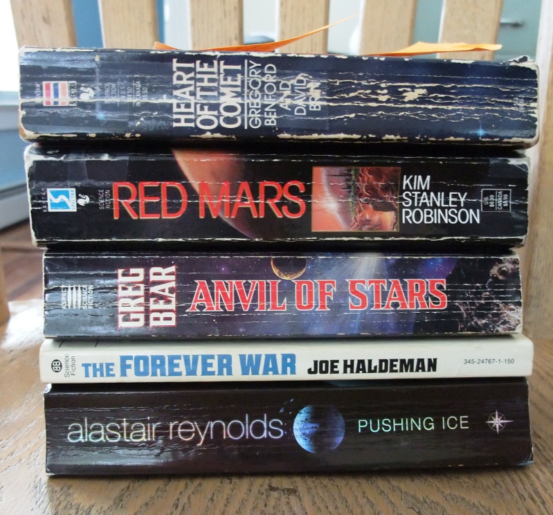 Okay, so I set myself up to go – firstly, I didn’t get down to WorldCon until Friday afternoon, which means that the first thing that happened was that I completely missed Joe Haldeman and David Brin’s signings. Nuts. Now, they both had programming later in the con, but the problem there was that I’d scheduled myself pretty tightly for most of the con and I actually didn’t get to go to many panels. (‘cuz I was there to, you know, *work*) And then I couldn’t find Greg Bear anywhere on the programming, and was told that he’d had to cancel at the last minute. Whoops. But that still left Gregory Benford, Kim Stanley Robinson, and Alistair Reynolds. And Alistair Reynolds was actually on my panel, so that seemed very doable!