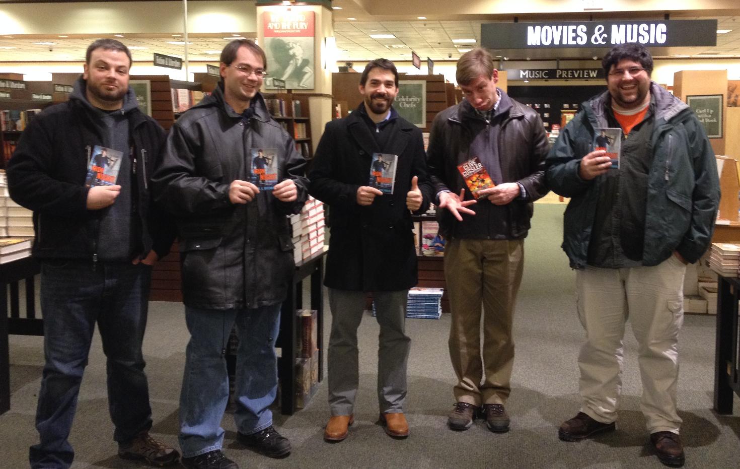 And there we all are! The loser of the contest had to wear the Jar Jar mask of shame. Sorry, Alex. But Myke was pretty intent on not losing. Photo generously provided by Richard Shealy, SFWA-registered copyeditor.
